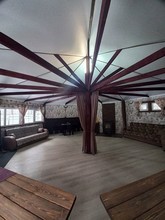 На территории есть большой зал для мероприятий (до 15 человек), где можно будет отметить день рождения, юбилей, свадьбу, выпускной вечер, детский праздник, мальчишник или девичник, корпоратив по случаю Нового года, 23 февраля, 8 марта или майских выходных. Зал можно украсить праздничной атрибутикой, удобно расставить столы для гостей и выделить место для танцев, конкурсов и развлекательной программы.